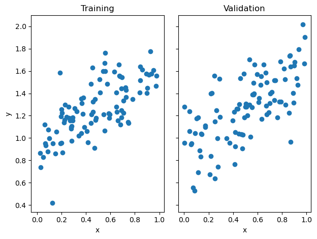 labs = axarr[1].set(title = "Validation", xlabel = "x")